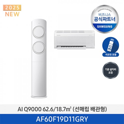 [삼성전자] 25년 NEW! AI Q9000 62.6/18.7㎡ (리모컨 포함) 19평 바디 화이트 / 바람문 그레이 매립배관 기본설치비 포함 AF60F19D11GRY