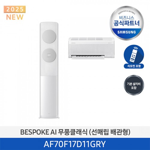[삼성전자] 25년 NEW! Bespoke AI 무풍 클래식 56.9/18.7㎡ (리모컨 포함) 17평 바디 화이트 / 바람문 그레이 매립배관 기본설치비 포함 AF70F17D11GRY