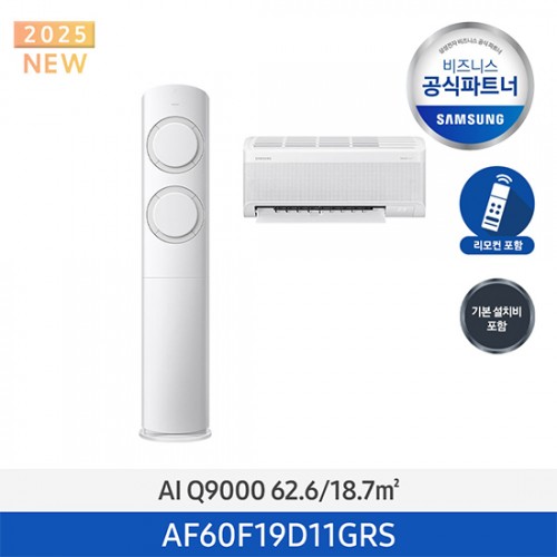 [삼성전자] 25년 NEW! AI Q9000 62.6/18.7㎡ (리모컨 포함) 19평 바디 화이트 / 바람문 그레이 매립배관 기본설치비 포함 AF60F19D11GRY