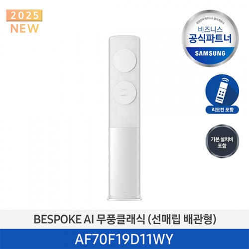 [삼성전자] 25년 NEW! 19평 BESPOKE AI 무풍 클래식 스탠드 에어컨 화이트 AF70F19D11WY 매립배관